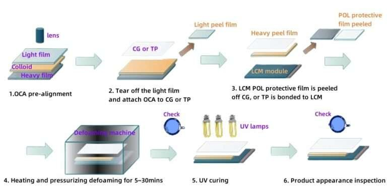 Note: While OCA bonding offers these performance benefits, it typically incurs higher material cost and lower production efficiency compared with simple frame tape bonding, especially for large size panel. The choice therefore balances optical/functional advantages against cost and manufacturing considerations.
