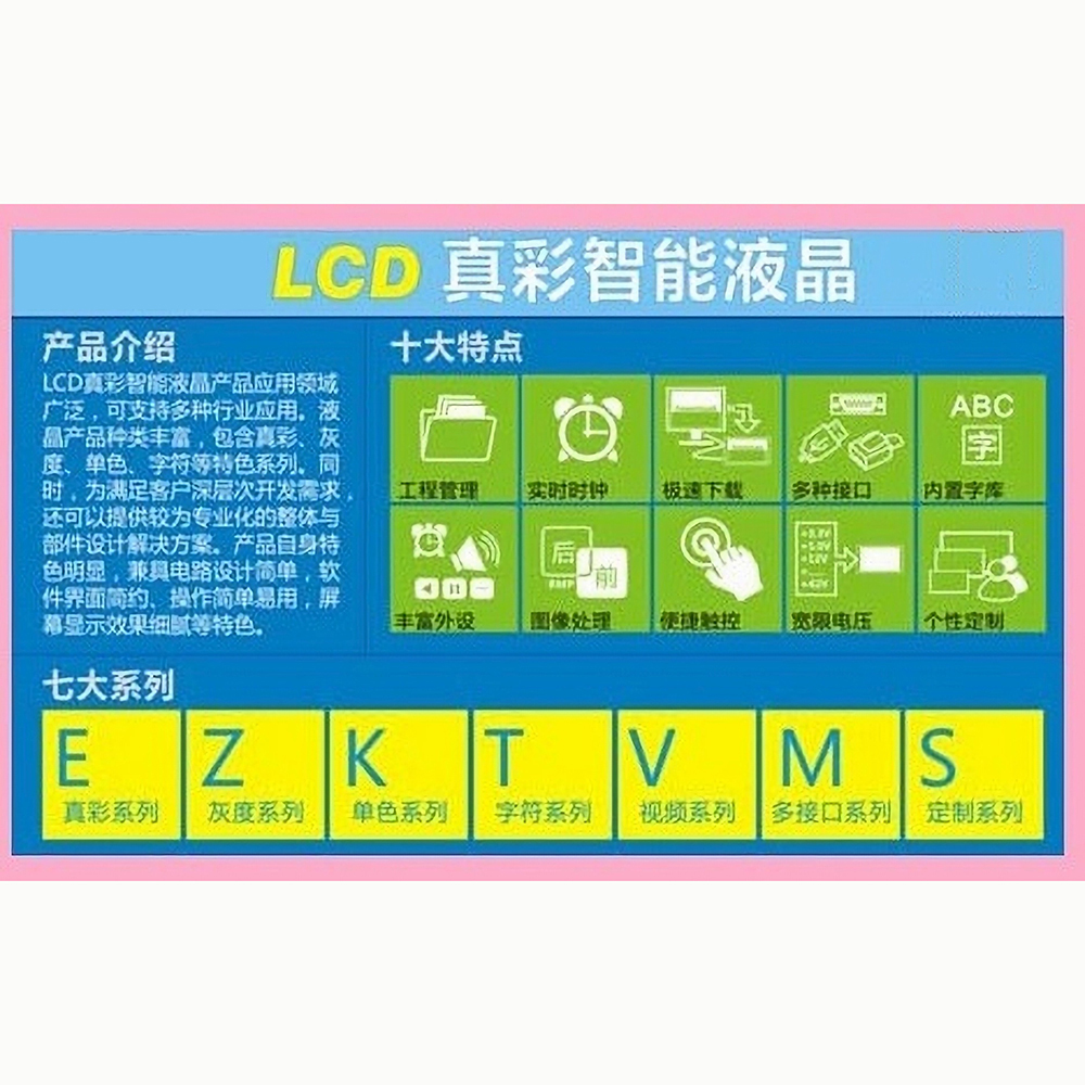 ◆内嵌8种标准字库,支持ASCII、中文简体(GB2312)和繁体(BIG5)显示并提供用户自定义下载字库